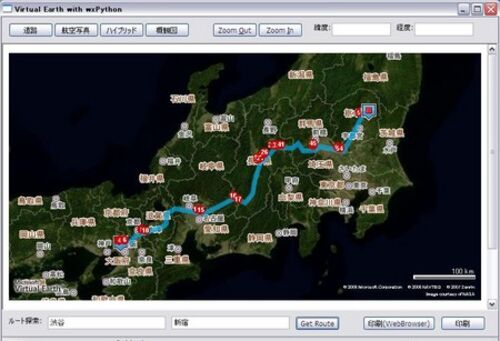 日経ソフトウェアの連載(作ってビックリ!Visual Basic, こだかかおる、2008年7、8月号)と同じことをVBではなくPythonでやろうと試みる。 前回までに行ったこと Virtual Earth APIを呼び出すHTMLファイルは、ダウンロードして使わせていただく (ファイル…